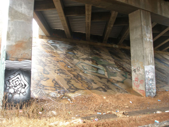 this was completed a year after this picture was taken and painted over a month later. my camera was being snoody right after i finished it. silly... this and the other side was completed with my brother brent and my good buddy graham moore. other skalawags contributed as well. good times.